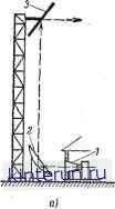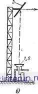 Автоматическая электрика Распространение радиоволн 1. Облучатель должен излучать радиоволну со сферическим фронтом (с допускаемым отклонением ± т~). Несферичиость 16 волны облучателя нарушает синфазиость поля в раскрыве, что ведет к расширению основного лепестка характеристики направленности и возрастанию амплитуды боковых. ![]() ![]() Рис. 7-56. Типы облучателей параболических антеии. а - полуволновый облучатель с вибраторным рефлектором:. 7 -четвертьволновый симметрирующий стакан; б - полуволновый облучатель с дискообразным рефлектором; в - полуволновый облучатель при волноводном питании; г - двухще-лёвой облучатель при волноводном питании; д - распределение электрического поля в двух-щелевом облучателе. 2. Облучатель должен обеспечить необходимое амплитудное распределение поля в плоскости раскрыва. Желательно при этом получить спадание интенсивности излучения (по мощности) от оси антенны к ее краям на 90%, что обеспечивает оптимальные параметры основного и боковых лепестков характеристики направленности. При этом удается получить уровень боковых лепестков ие более 1 % (по мощности). Если задаться 107о-ной потерей мощности, переливаемой за края зеркала, то соотношения между фокусным расстоянием f, радиусом зеркала Ro и углом между осью зеркала и направлением из фокуса иа край зеркала ф] могут быть получены по формуле (7-86) Зная характеристику направленности облучателя, легко определить угол обеспечивающий спадание мощности на 907о, и затем по формуле (7-86) найти значение/ (при данном Jo) или значение Ro (приданном f). На рис. 7-56 приведены распространеи-иые виды облучателей. На дециметровых волнах в качестве фидеров применяются коаксиальные кабели и в качестве облуча- телей- полуволновые вибраторы с вибраторными или дискообразными рефлекторами (рис. 7-56, а и б). Симметрирование осуществляется с помощью четвертьволнового стакана, основание которого соединяется с металлической поверхностью жесткого коаксиального кабеля, проложенного вдоль оси параболической антенны. На сантиметровых волнах фидером является волновод, который возбуждает вибраторные облучатели (рис. 7-56, е), щелевые антенны (рис. 7-56, г) или рупорные антенны (см. ниже). В параболических антеннах возможно осуществлять качание (управление) луча (основного лепестка характеристики направленности) путем смещения из фокуса облучателя. При этом луч отклоняется в сторону, противоположную стороне отклонения облучателя. Однако при больших углах смещения из фокуса облучателя, т. е. при больших углах рачания луча, появляются существенные искажения характеристики направленности: расширяется основной лепесток и растет амплитуда боковых лепестков. Эти искажения проявляются тем сильнее, чем глубже зеркало (короче фокусное расстояние). Перископические антенны представляют собой многозеркальиые аитениы (обычно двухзеркальные), использующие эффект отражения падающих радиоволн от плоских металлических зеркал (рис. 7-57). Применяются в качестве антенн на радиорелейных линиях связи. Перископические антенны позволяют резко уменьшить потери энергии. ![]() ![]() Рис. 7-57. Схема перископической антенны. а - случай двукратного #)тражения; б - случай однократного отражения; J - рупорный облучатель; 2 - параболическое или плоское зеркало; 3 плоское зеркало. которые возникают в радиочастотных кабелях при к
